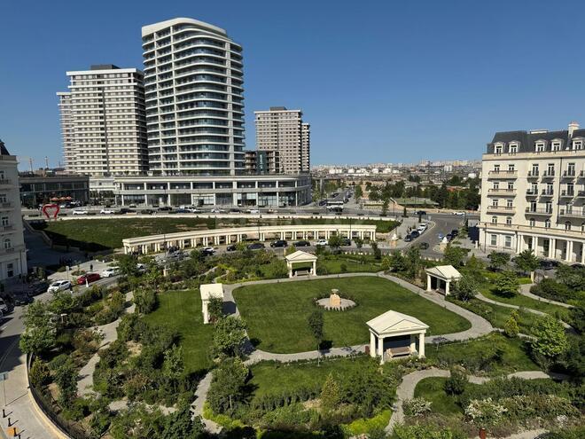 Ağ Şəhərin premium kompleksi olan Knightsbridge Residence-də qanuni 3 otaq 112.2 kv.m, tam yelçəkən mənzil satılır. Mənzilin xarici dairəvi bağa mıənzərəsi və daxili həyətə baxışı var. Kompleksin yüksək səviyyədə mühafizə sistemi, blok girişlərində Face ID (Üztanıma) ilə giriş, 2 mərtəbə parkingi, daxili həyəti və xarici dairəvi bağı var. Yaxınlıqda Ağ Şəhər Bulvarı, Neptun supermarketi, Nizami parkı yerləşir.