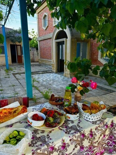 Kend ehmedlıde Resul marketın yanında 16 sotda 2 mertebe 8 otaqlı yaxşı temirli ev kiraye verırem. Istılık sıstemı kombı internet wife var. Heyetınde manqalxana yay metbexı, qarajı, elave komekcı otagı var. Evın arxasında ıse muxtelıf nov meyve agacları bostanı var. Ev hal hazırda bosdur. Real musterıler zeng vursun.