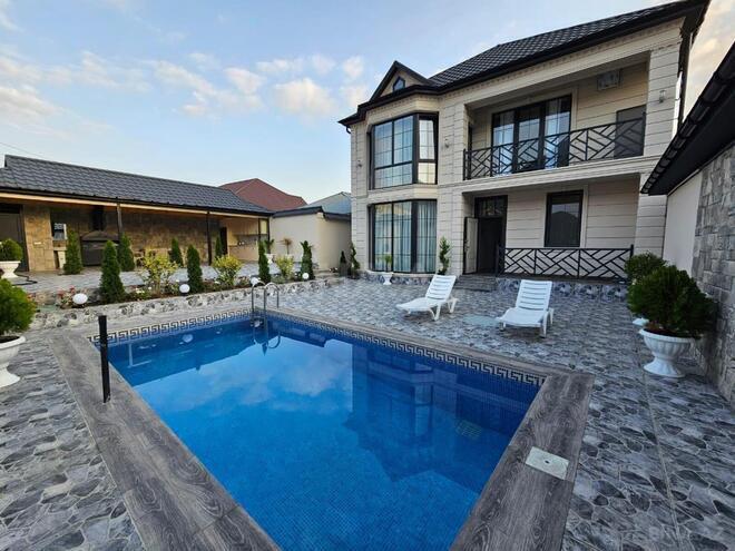 Yeni tikilidir. Şəxsi istifadə üçün, keyfiyyətli materiallardan istifadə olunaraq tikilmişdir. Əsas maqistraldan 100 metr, şəhər mərkəzinə 2 dəqiqəlik məsafədə, Bless otelin düz arxasında yerləşir. Həyətdə besetkada yay mətbəxi mebeli, soyuducu, televizor, həyətdə sanitar qovşaqda isti su var. Besetka isti poldur. 4 yataq otağı, 3 sanitar qovşaq mövcuddur. Bütün döşəmə isti poldur. Baseynin ayrıca kombisi, isitmə sistemi var. Sakit və mənzərəli görünüşü var. Biznes məqsədi üçün istifadə oluna bilər. Belə evi günlük 400 manata kirayə vermək olur.