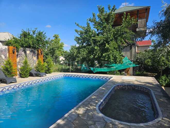 12 sot kupcali torpaqda, her növdə meyve ağacları, 60-70 neferlik bağlı mekan (icerisinde, kinoteatr, bar stoykasi, metbex, kamin və kombi sistemi var), elave olaraq manqalxanasi yay mətbəxi ile birge, heyetde suseli 30 kv metrelik elave mekan. Sauna, 2 baseyn və yanında dush kabin. Toyuq-cuce saxlamaq üçün evin arxaninda yer. Külafireng hundurluyu 10m, sahəsi 20 kv. Altında it üçün yer. Üstündə ovcarka hədiyyə) Ev 5 otaqlı, her otaq ayrica olaraq balkona çıxışı var. 4 yataq otağı, 1 studio. Yataq otaqların ikisi sanuzel ilə birgedir. Umumi 4 sanuzel var. Biri heyetde, uchu yuxarida. Evin alt hissəsində üç zirzəmi var. Domofon və kameralar mövcuddur. Bag əşyaları ilə birgə satılır. (6 kondisioner, 5 TV və mebeller) Havası gozeldir. Duz gölünün ətrafındadı. Cox tecili satishda qoyulub.
